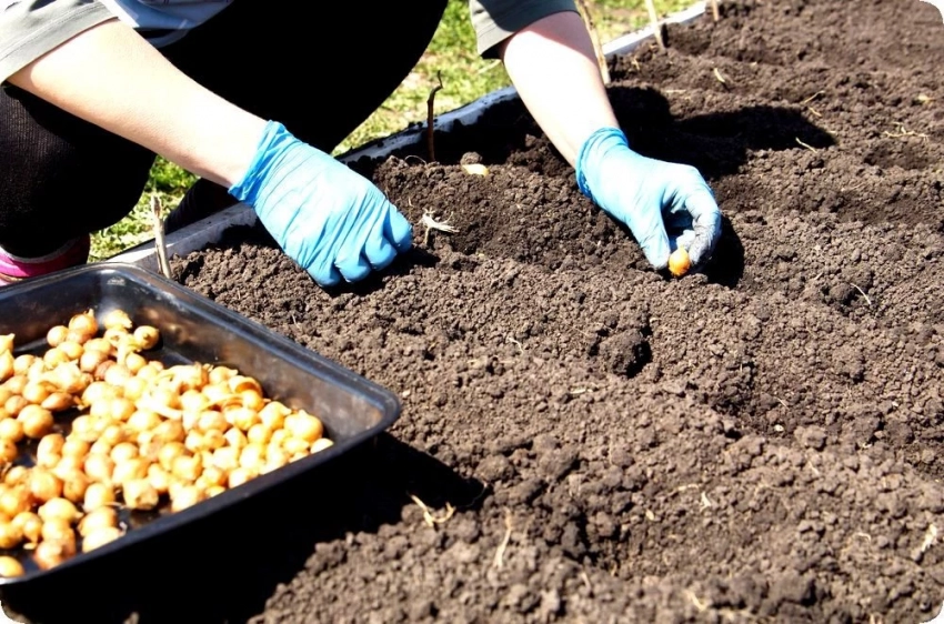 - Осенью сажают самый мелкий севок, который до весны не сохранится и его все равно пришлось бы выбросить.