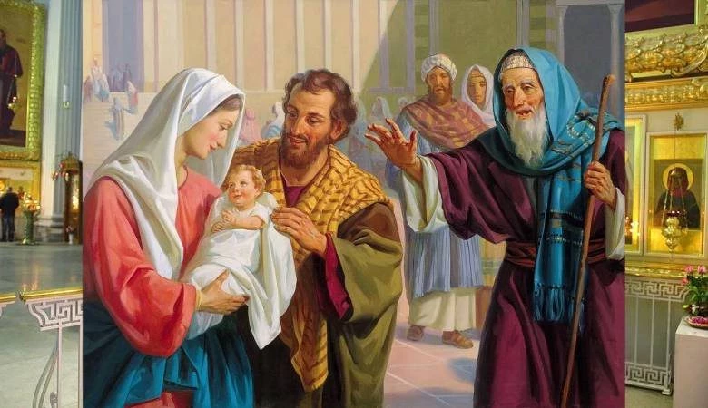 Когда же Мария вошла в Иерусалимский храм, Симеон сразу понял, о ком говорил ангел. После увиденного чуда он спокойно смог отойти в мир иной. Симеон также рассказал Деве Марии о страданиях, которые предстоит пережить её сыну. Также 15 февраля произошла ещё одна важная встреча: Мария и Иосиф встретили у храма вдову Анну, которая рассказала всем жителям города о рождении Божьего сына.