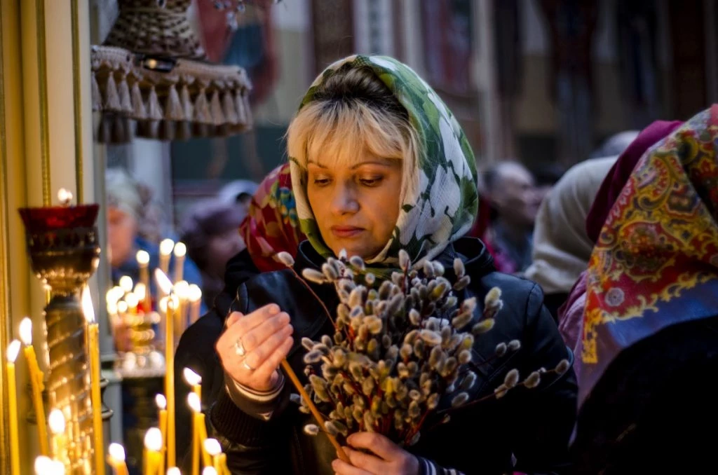 В воскресенье в церквях также идет служба, и священники окропляют вербные прутики святой водой.