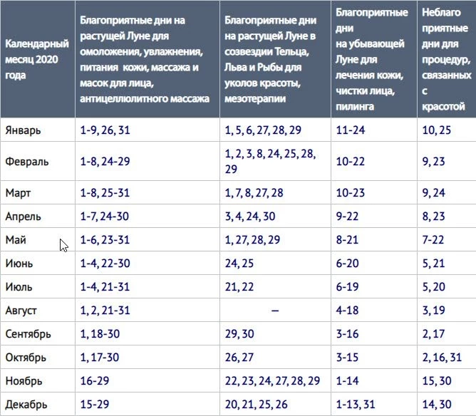 Советы астрологов помогут вам заблаговременно, рационально и эффективно распланировать очередной месяц. В сегодняшнем материале вы найдете лунный календарь красоты и здоровья на май 2020 года с учетом различных астрологических показателей: дня недели, текущей фазы Луны, знака Зодиака, ближайшего полнолуния и новолуния. Для того чтобы задуманный поход к врачу или косметологу принес нужный эффект — мае, проверьте самые благоприятные и неблагоприятные дни в этом месяце.