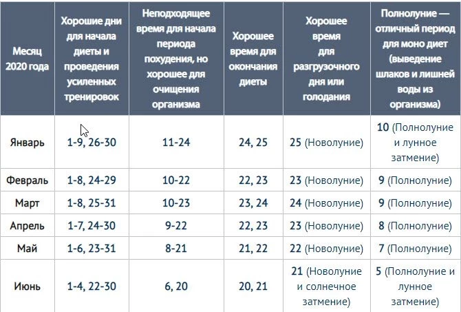Лунный календарь похудения на февраль 2020 года благоприятные дни