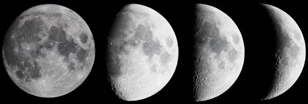 Лунный цикл составляет в среднем 29,5 дня и условно делится на шесть фаз:
