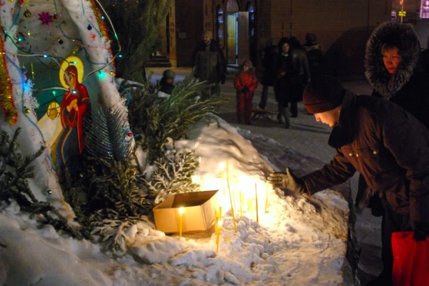 Вечером 6 января, в Сочельник, хозяйки ставят на праздничный стол 12 постных блюд, которые символизируют 12 апостолов. Главным блюдом является кутья, которую варят из цельных зерен риса или пшеницы. В нее добавляют мед, орехи, изюм, курагу, мак. Традиционные рождественские блюда – запеченная рыба, овощные салаты, рагу, соления, голубцы с грибами, пироги с овощными и сладкими начинками, растягаи, кулебяки, пирожки. Главный напиток на праздничном столе – узвар или компот из сухофруктов и шиповника.
