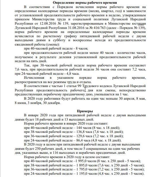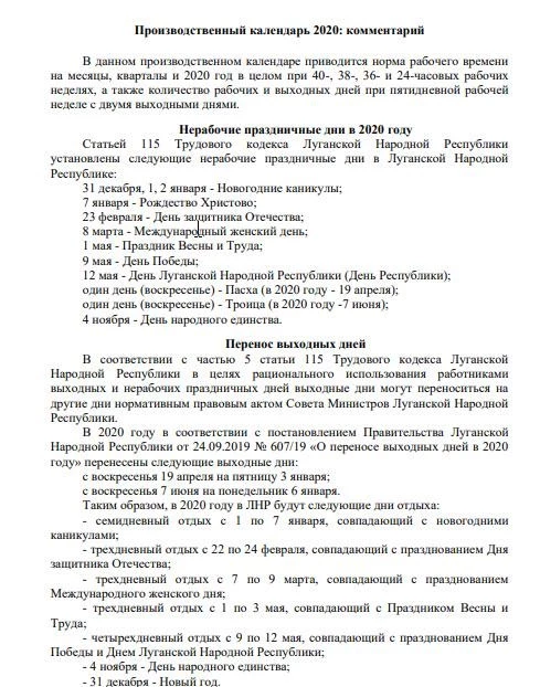Производственный календарь на 2020 год с праздниками и выходными ЛНР