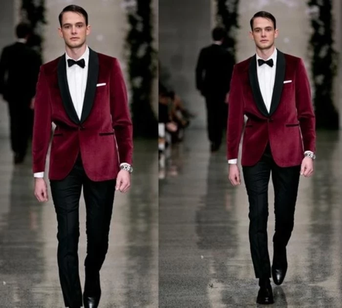 Идеальным будет, если мужской образ будет сочетаться с женским. В качестве аксессуаров можно подобрать галстук — бабочку.