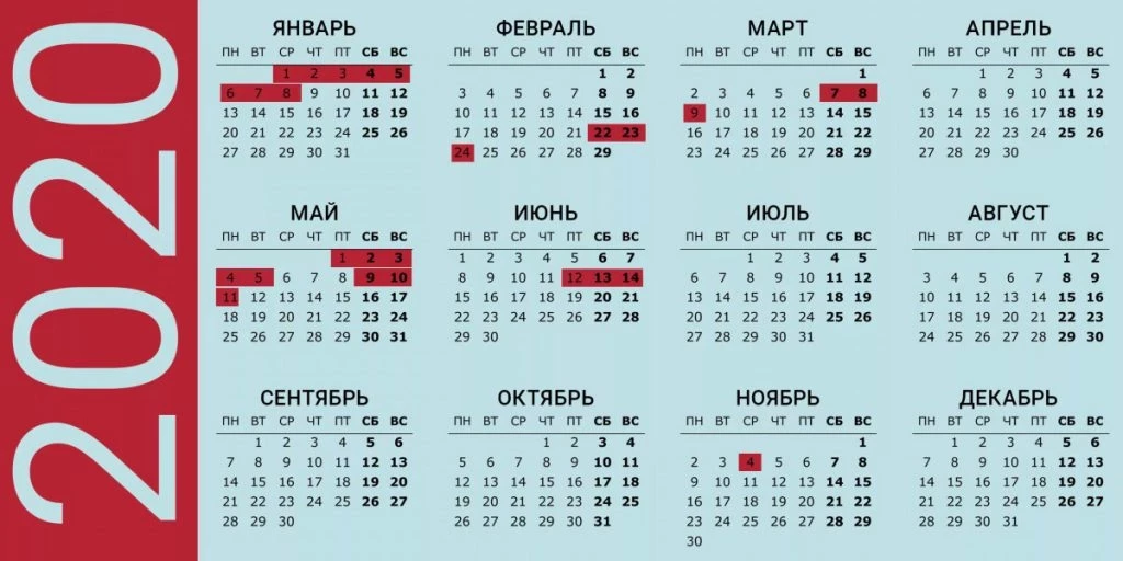 Производственный календарь на 2020 год для Россия (утвержденный)