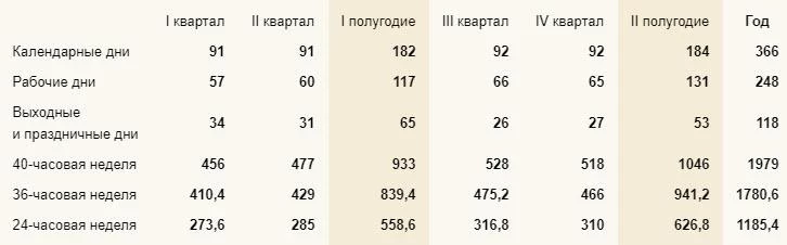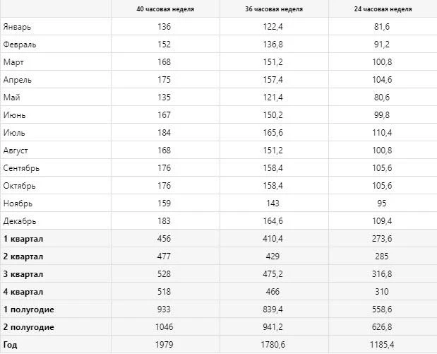 · при 24-часовой рабочей неделе: 1185,4 часа.