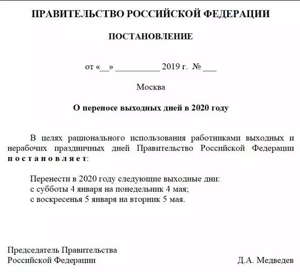Нормативный акт, регулирующий продолжительность новогодних каникул 2020