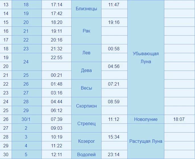 Каждый месяц моменты новолуния и полнолуния имеют место в разных знаках Зодиака по очереди, начиная с Овна и заканчивая Рыбами. Иногда в месяце бывает по 2 новолуния, но они никогда не будут в одном и том же знаке подряд!