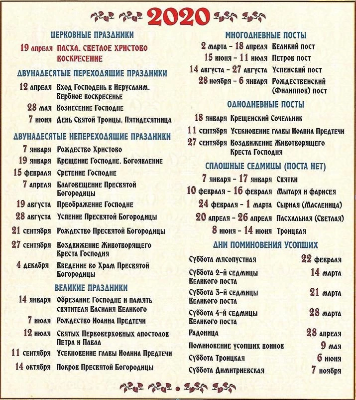 - 19 декабря 2020 года — Святителя Николая Чудотворца (Зимний Николай).