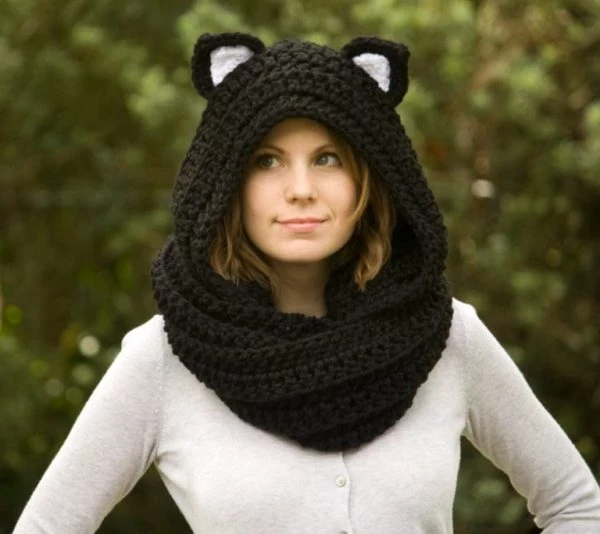 Из простоватых вязаных шарфиков ваша сестра уже давно выросла, ей нужна модная зимняя вещь. Замечательный подарок — снуд. Его можно надевать на голову, вместо шапочки, а также делать из него различные формы воротника.