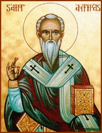 Святой Антипа при жизни испытывал много страданий. Святой подвергался разным испытаниям за свои проповеди о спасении. Язычники его предавали огню, бросив в раскаленный медный бык, а он не повредился. Даже всепоглощающая стихия не могла побороть Святой Дух. Тело Антипы осталось невредимым.