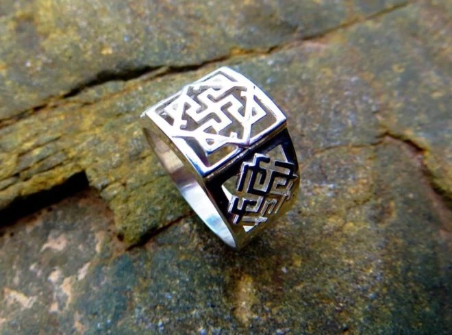 Аналогичные функции приписывали и кольцу-оберегу, его носили на пальце. Это украшение уберегало владельца и придавало ему сил. Тот, кто носил знак, был защищен от болезней и неприятностей.