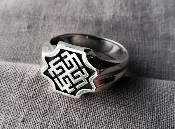 Как все тайное, эзотерическое, надпись на внутреннем ободке колечка, скрыта от посторонних глаз. Никто не узнает, от чего талисман хранит своего владельца, чему служит, следовательно, не сможет навредить. Рисунок, орнамент с внешней стороны трактуется неоднозначно, а внутренняя надпись гравируется буквами, по-другому ее не прочтешь.
