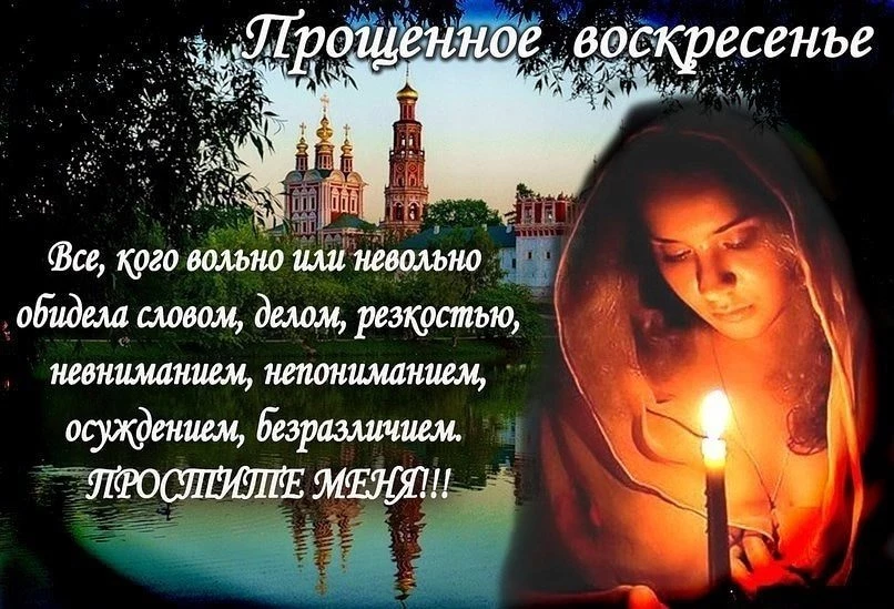 В этот день следует приветствовать родных, знакомых, обнять, поцеловать их и попросить, чтобы они простили вас за все.Примиряясь с ближними людьми, мы очищаем свою душу, начиная пост прощеными. Умение прощать – это великое искусство. Каждый человек должен избавиться от тягостных мыслей, переживаний и не носить камень за душой. Это воскресенье действительно необычное, оно помогает многим из нас стать мудрее, сильнее. Мы просим прощения у Бога, родных, всех любимых и любящих нас людей.