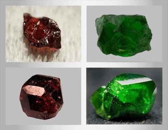Несмотря на то, что многие подразумевают под гранатом его исключительно красный оттенок, это не совсем правильно. Природе известно гораздо большее количество цветов данного минерала, что можно увидеть на фото. Условно выделяют 6 разновидностей, свойства которых уникальны: