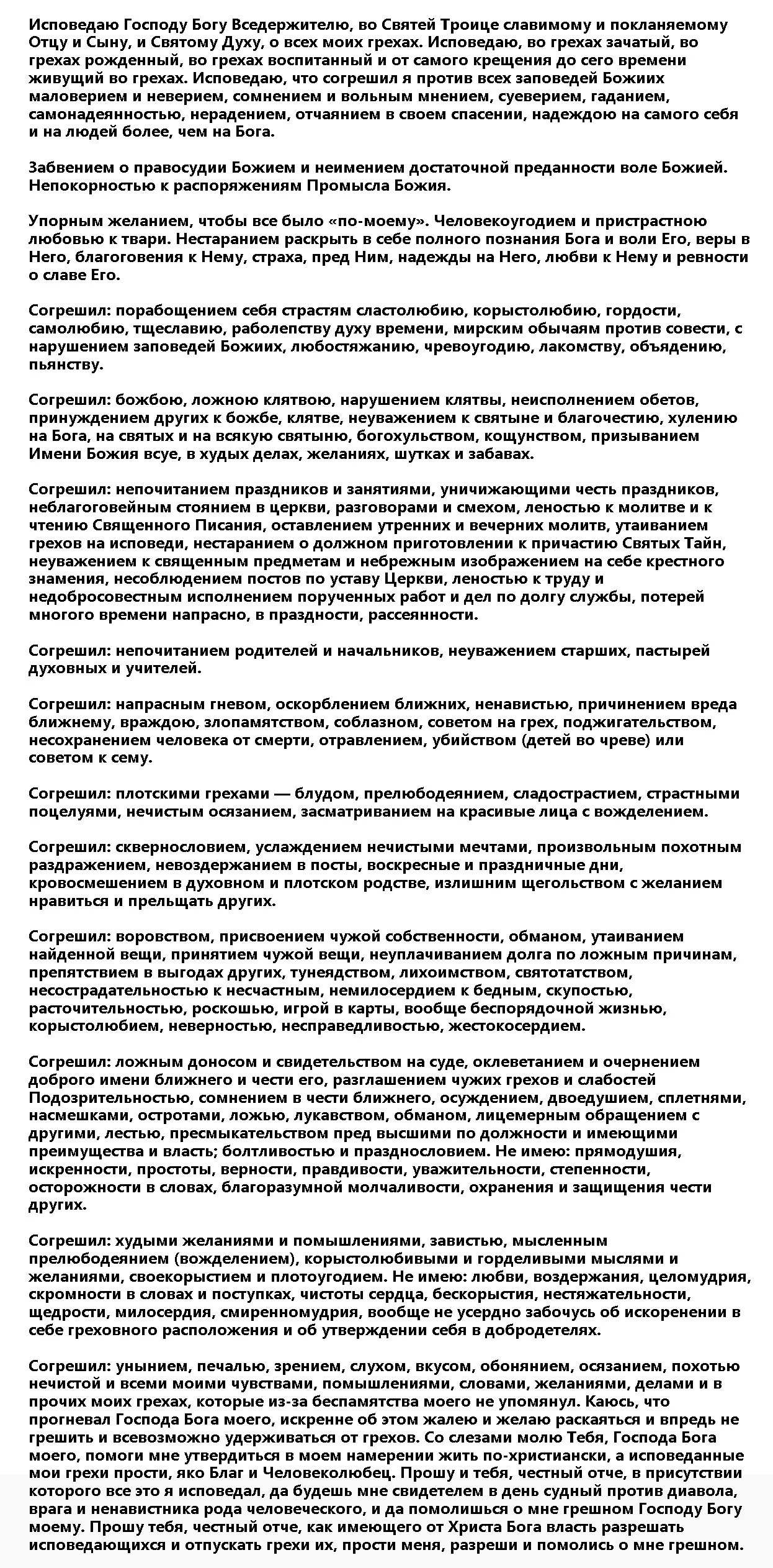 Список грехов для исповеди для женщин полный, как правильно исповедоваться пример?