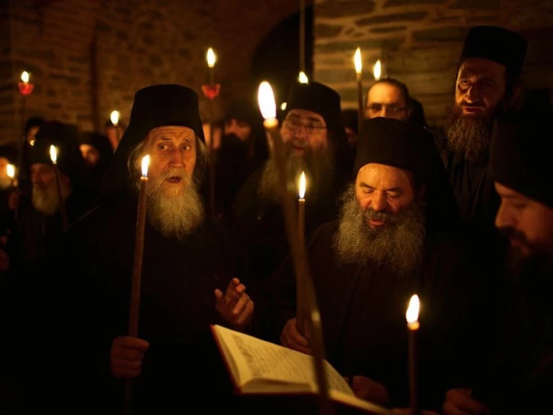Братия, приветствуя нового сподвижника целованием мира, поют: «Познаим, братие, Таинства силу: от греха бо по Отческому дому востекшаго блуднаго сына, Преблагий Отец, предусрет, лобызает и паки Своея славы д?рует познание, и таи?нственное горними совершает веселие, закалая тельц? упит?ннаго, да мы достойно жительствуем Заклавшему Человеколюбивому Отцу и славному Заколению – Спасу душ наших«.