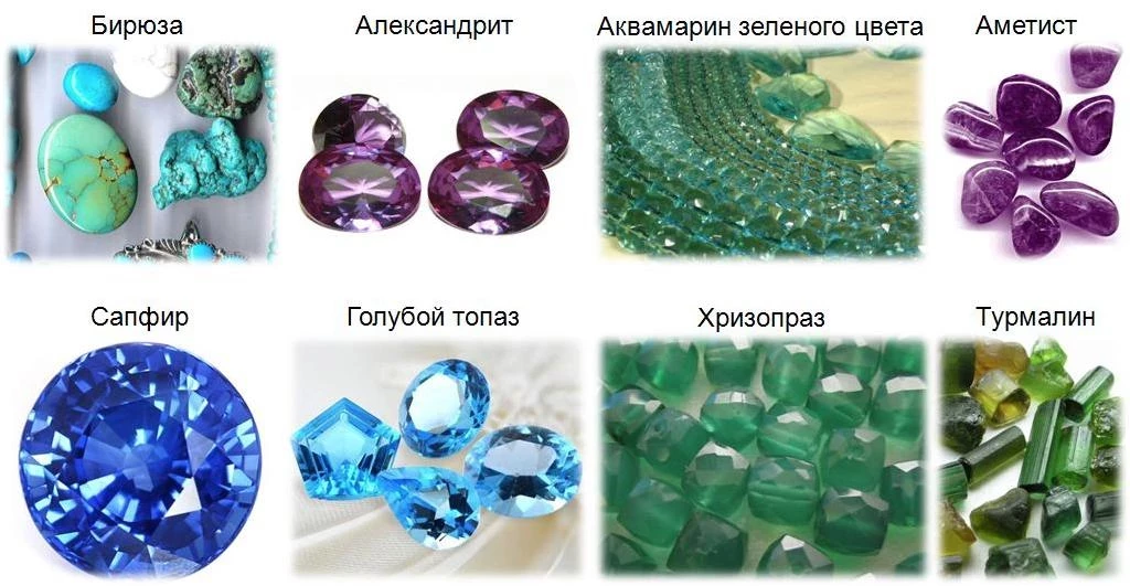 Их самоцветы: лазурит, аметист, кварц, агат, тигровый глаз и кровавая яшма.