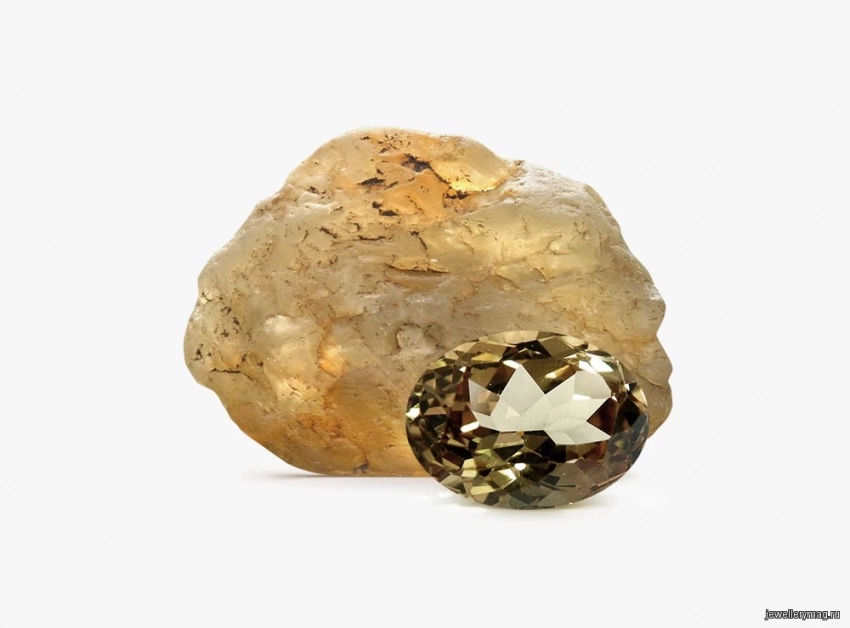 Это прозрачный кристалл, имеющий золотистый, лимонно-зеленый, винно-желтый окрас. Максимальный эстетический эффект достигается с помощью бриллиантовой огранки. Это не самая дорогая разновидность, однако, ювелирные изделия из этого минерала ценятся довольно высоко.