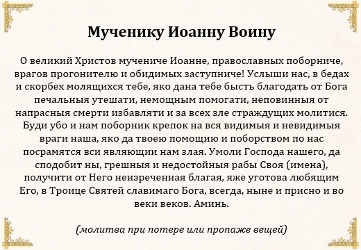«Все, что утратил, ближе ко мне Господь узрит все, Он не допустит нечему покинуть меня, даже (название утраченного предмета) отыщется скоро, и стану я счастлив на век!»