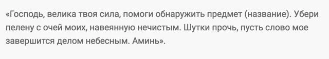 Внимательно оглядитесь. Молитва работает быстро. Вещь будет находиться там, где вы и предполагали.