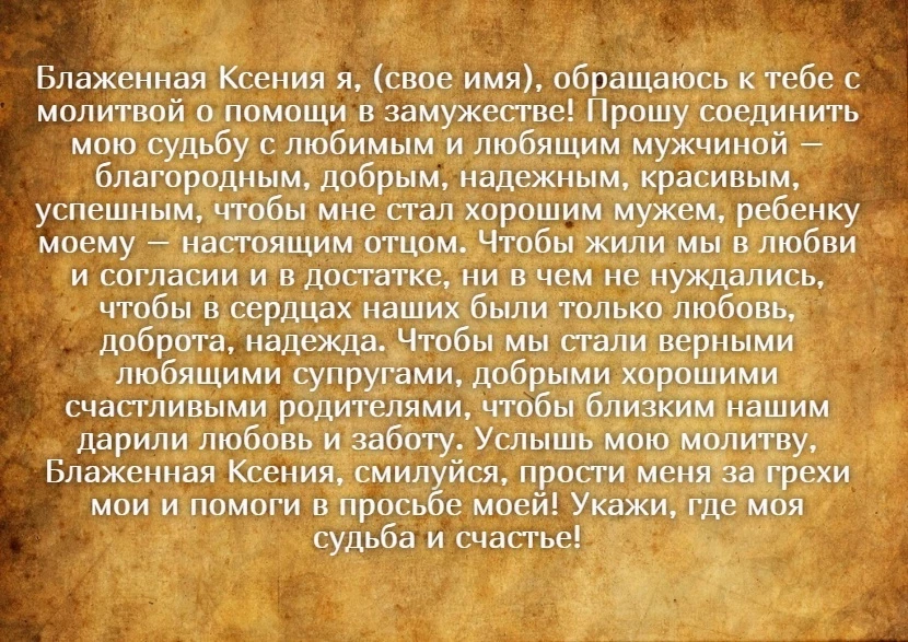 Но это — не правило, не стоит молиться святым, словно они имеют «специализацию», помогает выйти замуж и Ксения Петербургская, принявшая подвиг добровольного безумия после гибели супруга — назвать ее счастливой в обычном смысле вряд ли возможно. Широко растиражировано заблуждение по поводу понятия «сильная молитва».