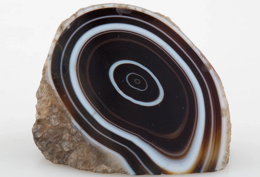 Оникс, в отличие от агата, имеет выраженную слоистую структуру. На разрезе она очень отчетливо заметна.