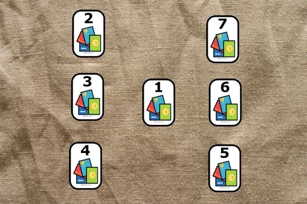 Отличительной чертой этого расклада является то, что 7 карту выбирают не наугад, как первые шесть. Эту карту – Старший Аркан –рассчитывают по сумме шести карт. Другими словами, она представляет собой объединенную энергию вашей пары. Для нахождения ее номера сложите числовые значения предыдущих карт.