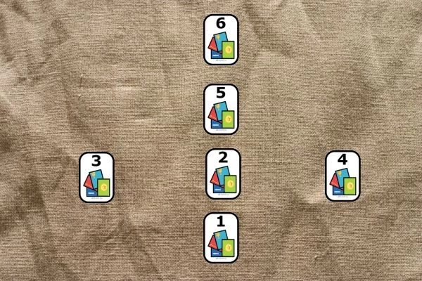 1 — Что удерживает при старом партнере.2 — Что притягивает в новом партнере.3 — Ключ, карта в этой позиции подсказывает, что нужно сделать.4 — Способ, подсказка, как вести себя, как сделать то, что вы хотите сделать.5 — Итог, исход дела, результат ваших действий.