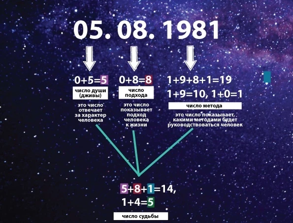 А вот если данное число является числом вашей судьбы, то влияние будет очень сильным. Рассчитать свое судьбоносное число достаточно легко, рассмотрим на примере: