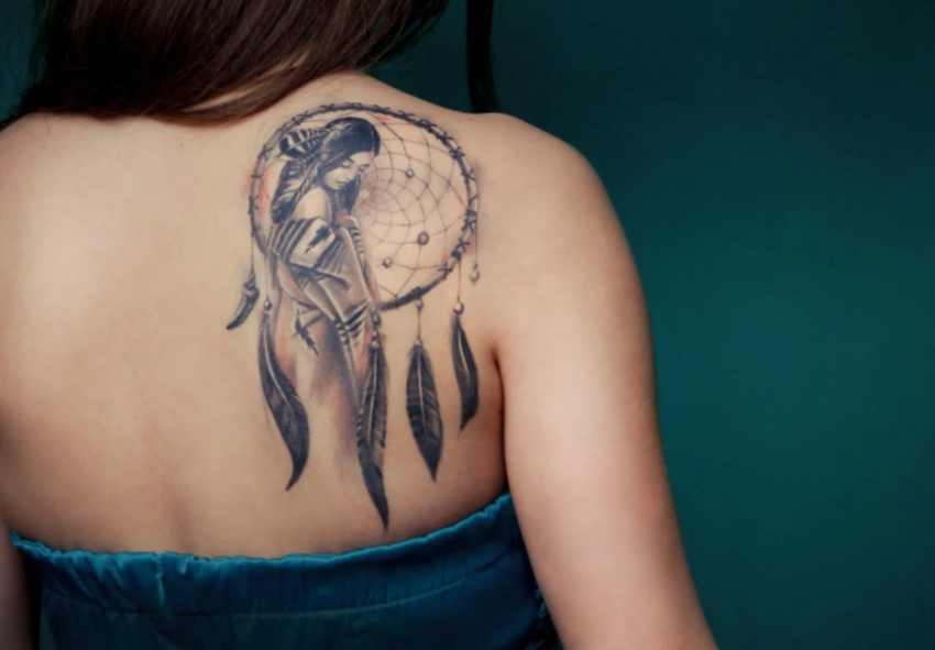 Тату ловец снов защитит человека от негативной энергетики в дневное время.