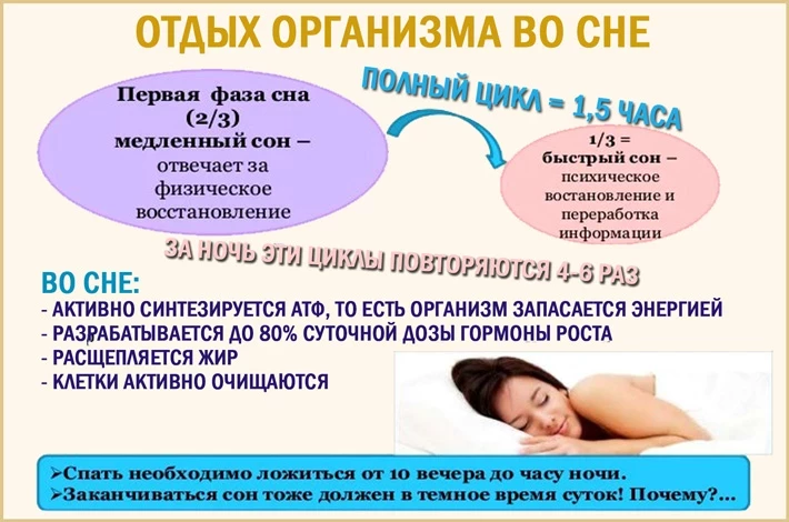 Затем наступает очередь медленной фазы сна, во время которой тело окончательно расслабляется. Человек перестает реагировать на внешние раздражители, мозговая активность резко снижается, а вместе с ней замедляется сердечный ритм, углубляется дыхание, падает артериальное давление. Все тело отдыхает, и центральная нервная система в том числе. Работают только функции жизнеобеспечения.