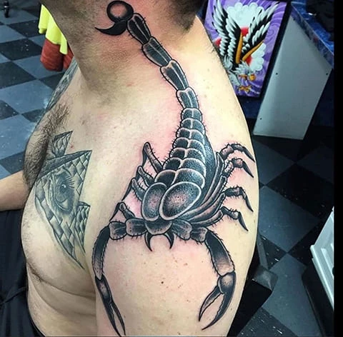 Надежность и стабильность мужчины оценивается по его плечам, на которые можно будет опереться. И если у него наколота татуировка со скорпионом на плече, можно судить о его надежности, готовности решать любые трудные ситуации. При внешней непоколебимости мужчина внутри скрывает опасного хищника.