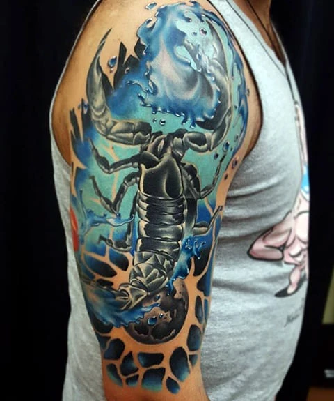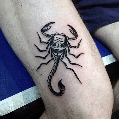 Татуировка в виде опасного насекомого может рассказать про смелый характер своего обладателя. Такой мужчина всегда готов идти до конца, каким бы сложным не был его путь. Кроме того, такое нательное изображение может символизировать двойственность натуры, и даже предательство. Иногда татуировка скорпиона олицетворяет одиночество и внутреннюю духовную силу.