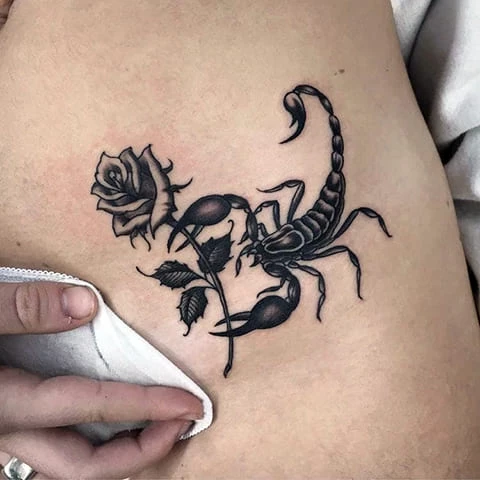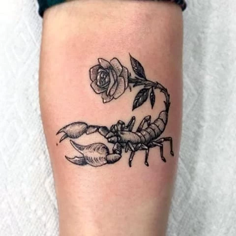 Если на хвосте скорпиона вместо ядовитого жала изображается роза, то такая тату может означать миролюбивый характер человека, который хочет нести в мир любовь и красоту.