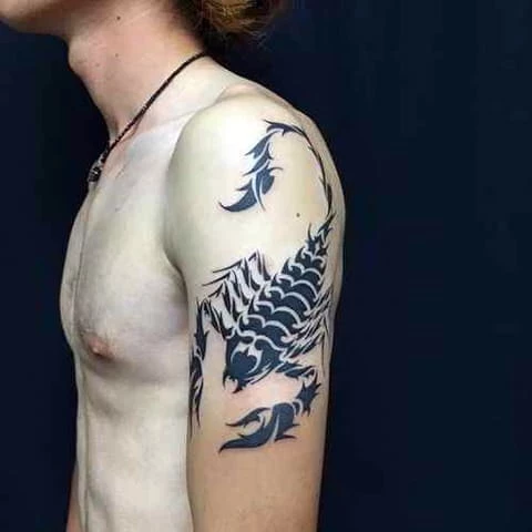 Нередко эффектное тату в виде скорпиона можно увидеть на мужском теле. Представители сильного пола часто выбирают изображения в стиле трайбл. Подобные татуировки для мужчин означают: