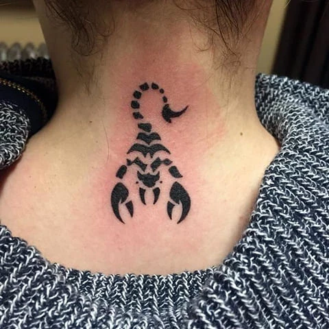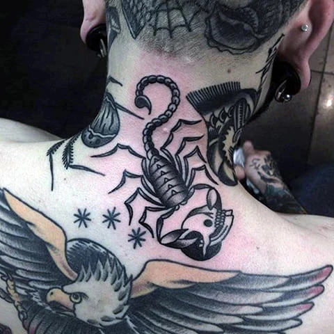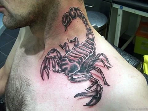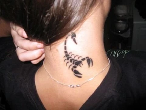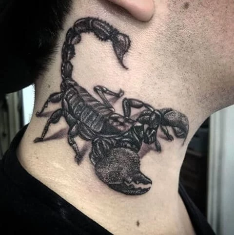 Если скорпион располагается на шее у мужчины, такая татуировка свидетельствует о его остром и быстром уме, сообразительности, способности принимать правильные решения в любых, даже экстремальных ситуациях. Также это может быть символ, цель которого повысить интеллектуальный потенциал владельца тату.