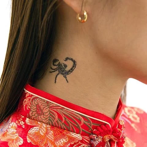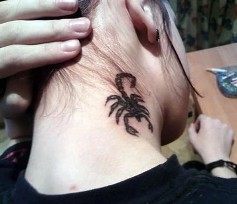 Фото татуировок со скорпионом в области шеи можно посмотреть ниже.