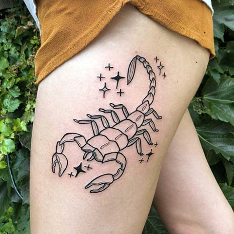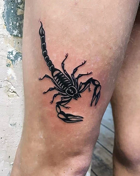 На ногах также часто встречаются татуировки скорпиона. В первую очередь насекомое набивают на бедре или икрах.