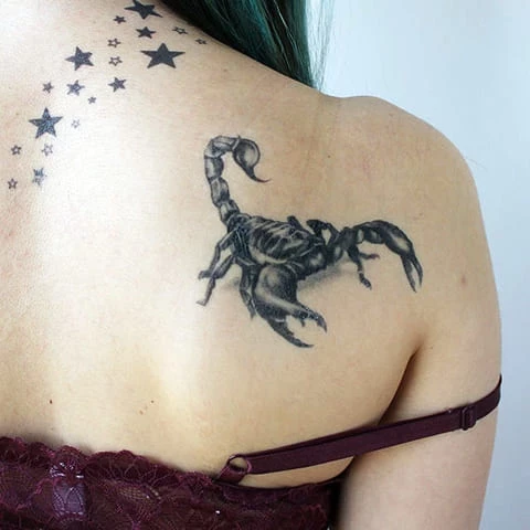 На лопатках скорпиона носят ответственные и инициативные мужчины. А у девушек знак, наоборот, говорит о переменчивости нрава.