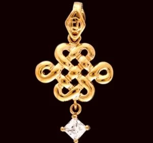 Узел, состоящий из восьмерок, пришел в фэншуй из буддизма, и связывается таким образом, что при рассмотрении неизвестно, где его начало и конец. Выполняется в разнообразной цветовой гамме как из нитей, так и из любого другого материала, в том числе и драгоценных металлов в виде ювелирных украшений. А также узелочек вяжут, вышивают, рисуют и гравируют. Дополняется артефакт такими талисманами, как красная нить, монетки, различные камни и бусины. Делятся узелки на такие виды: