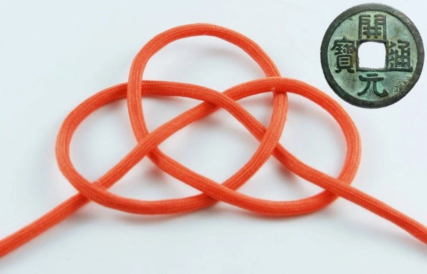 Узел счастья и богатства имеет бусину и медальон с соответствующим иероглифом, в зависимости от цели. Если есть желание привлечь в дом материальную удачу, то можно прикрепить монету или их комбинацию, расположенную столбиком и связанную красной нитью.
