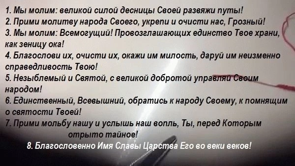 Для того, чтобы талисман работал, нужно прочитать молитву. Делать это рекомендуется во время завязывания узелков. Слова должен произносить тот, кому завязывают оберег.