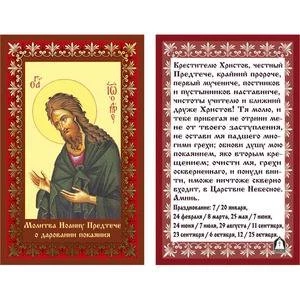 Крестителю Христов, проповедниче покаяния, кающагося не презри мене, но совокупляяся с вoи Небесными, молися ко Владыце за менe, недостойнаго, унылаго, немощнaго и печальнаго, во многия беды впaдшаго, утруждeннаго бурными пoмыслы ума моего. Аз бо есмь вертеп злых дел, отнюдь не имeяй конца греховному обычаю, пригвождeн бо есть ум мой земным вещeм.