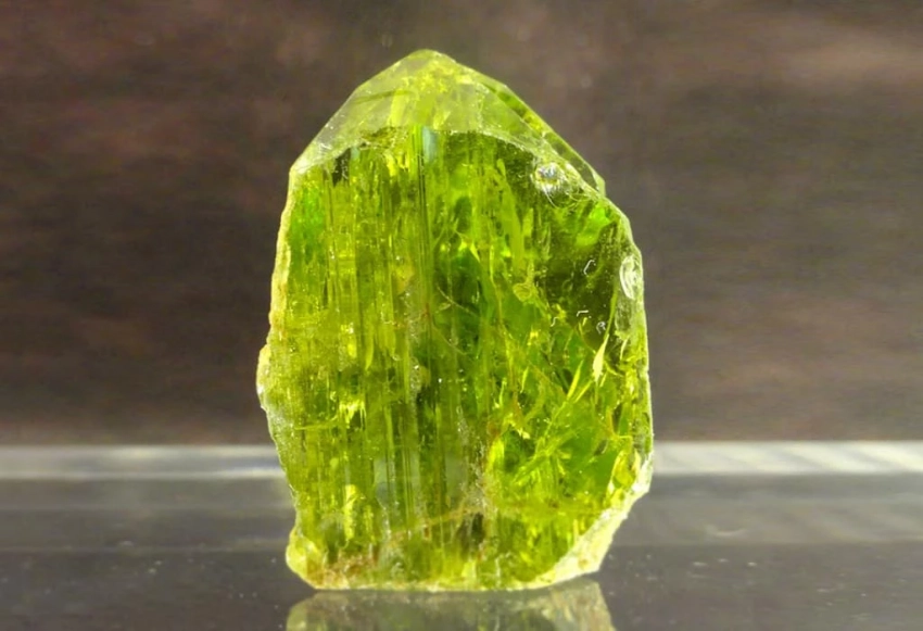 Слово «хризолит» с греческого языка означает «золотой камень». Хоть в таком цвете этот камень можно увидеть редко, но можно наблюдать вкрапления желтого оттенка. Хризолит встречается в зеленом или оливковом оттенке.