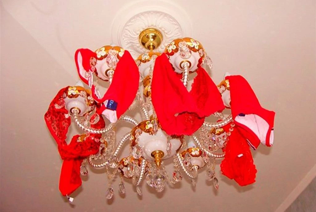 Люстра в обряде ассоциируется с космосом, поскольку находится на потолке. Забрасывая бельё на осветительный прибор, человек будто запускает послание во Вселенную.
