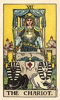 отмечает, что Колесница — единственная карта в колоде Таро, связывающая