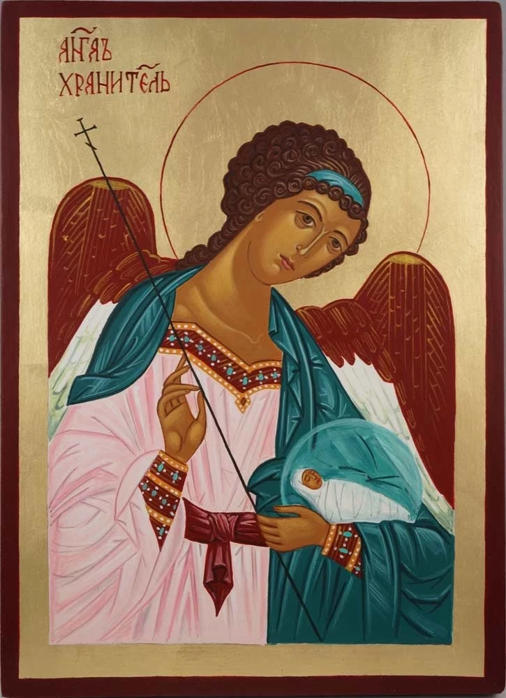 «Ангел-хранитель мой, ты оберегаешь меня с рождения. Ты посланник, чтобы сторожить мою плоть. Твоя непрерывная охрана успокаивает мою душу. Во мраке ночи, при свете дня я взываю к твоим всевышним силам. Я всегда уверен, что ты не оставишь меня в сложной ситуации. Ангел мой, молю тебя, ты не брось меня.