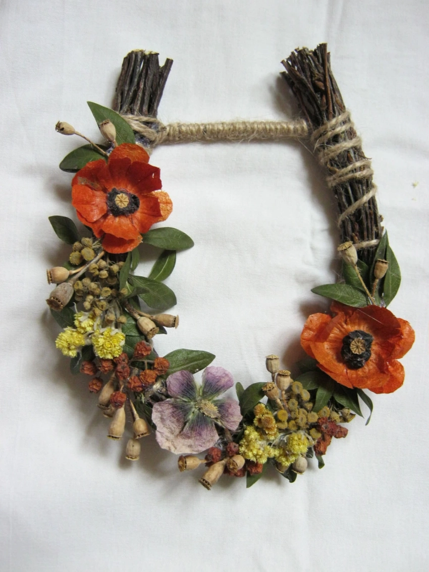 Подкова из прутьев ивы, украшенная сухоцветами станет настоящим магнитом счастья. здоровья и семейного благополучия.